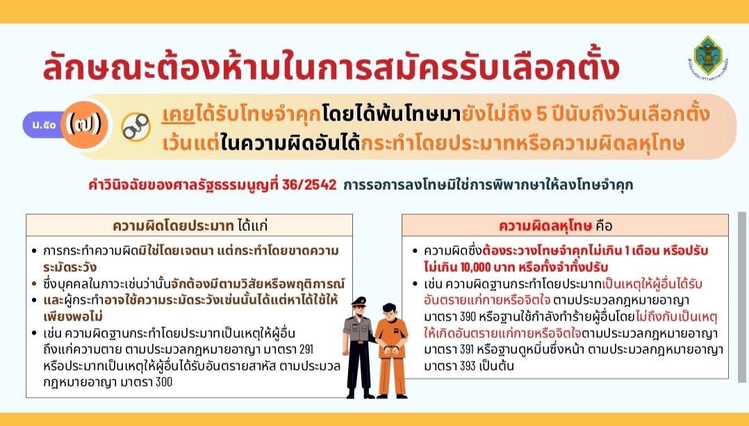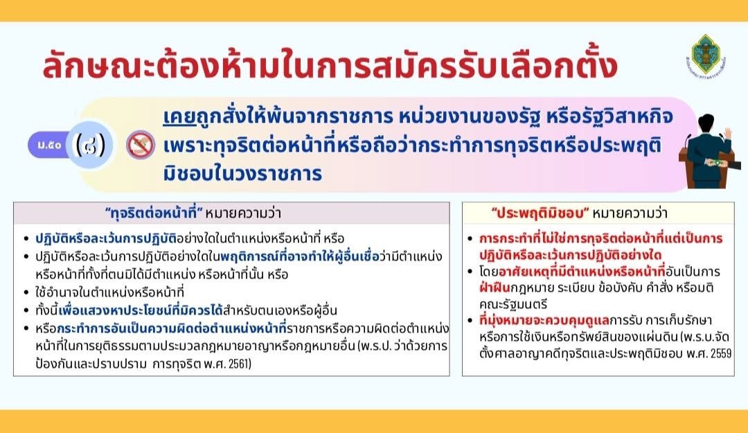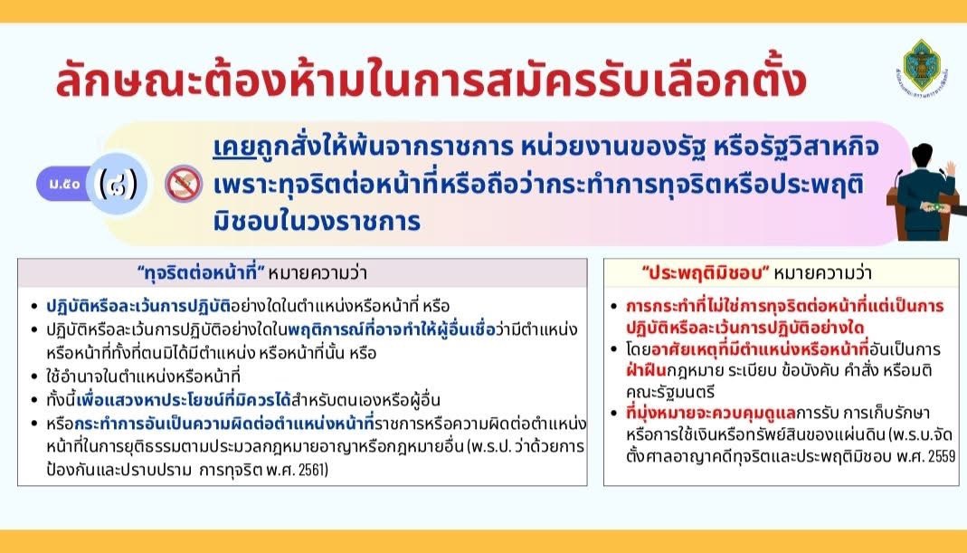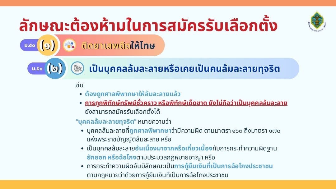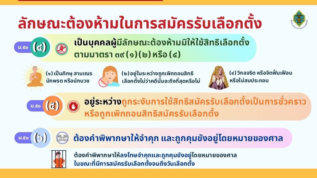 คุณสมบัติผู้สมัครรับเลือกตั้ง คุณลักษณะต้องห้ามสมัครไม่ได้