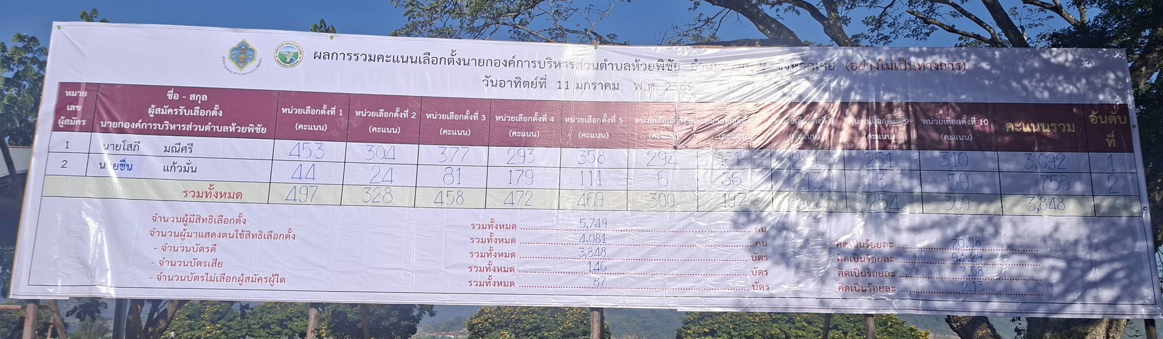 ผลการเลือกตั้ง สมาชิกสภาองค์การบริหารส่วนตำบลห้วยพิชัยและนายกองค์การบริหารส่วนตำบลห้วยพิชัย (อย่างไม่เป็นทางการ) วันอาทิตย์ที่ 11 มกราคม พ.ศ.2569